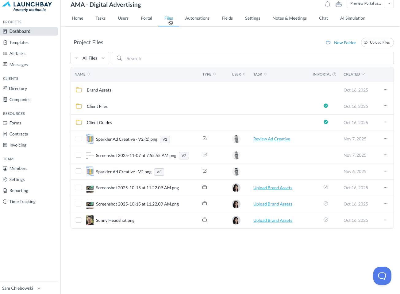 After clients approve the files you send them, LaunchBay makes it convenient to download them in bulk from their project's Files tab.