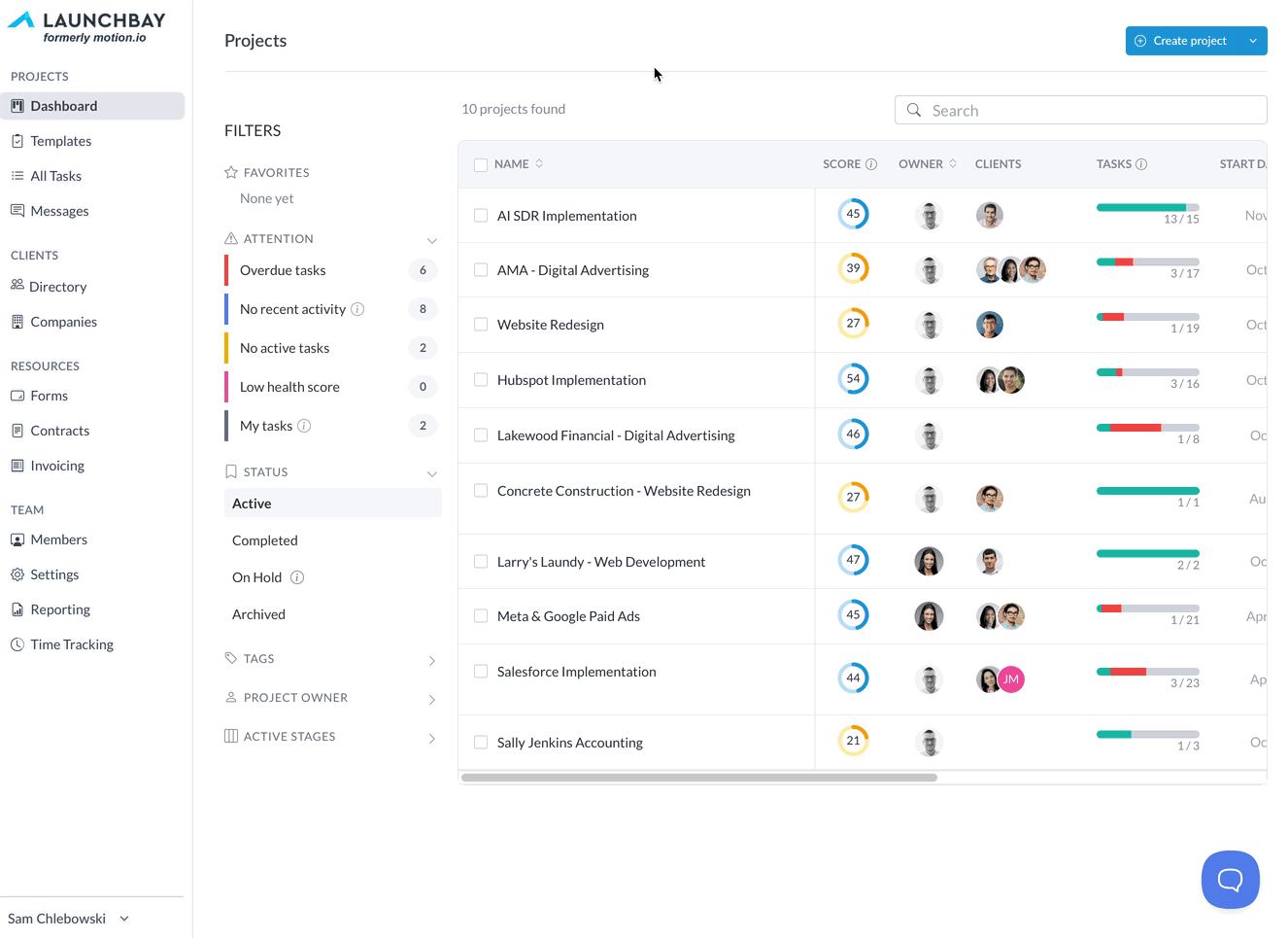 Generally, we recommend assigning the project owner to the team member who will most frequently communicate (i.e., the main point of contact) with clients throughout the project.