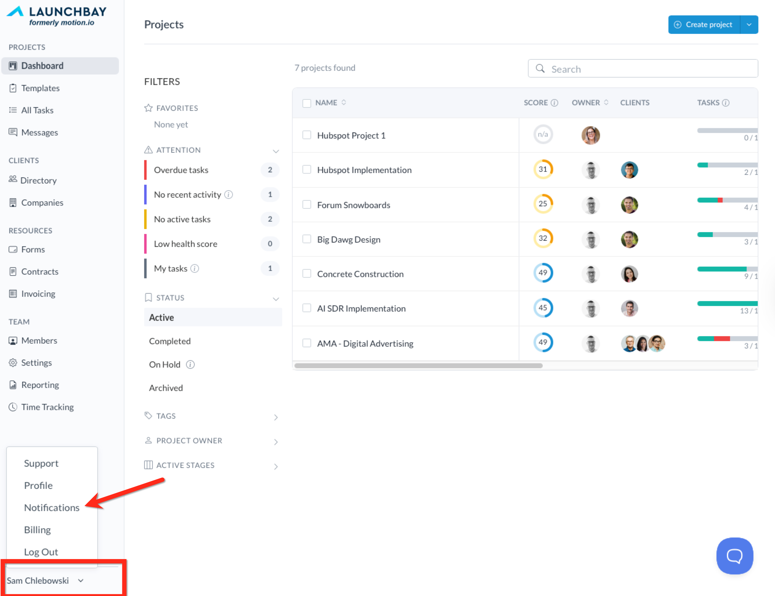 Across your LaunchBay projects, there will likely be times when you want to be notified more or less frequently, depending on your role in each project.