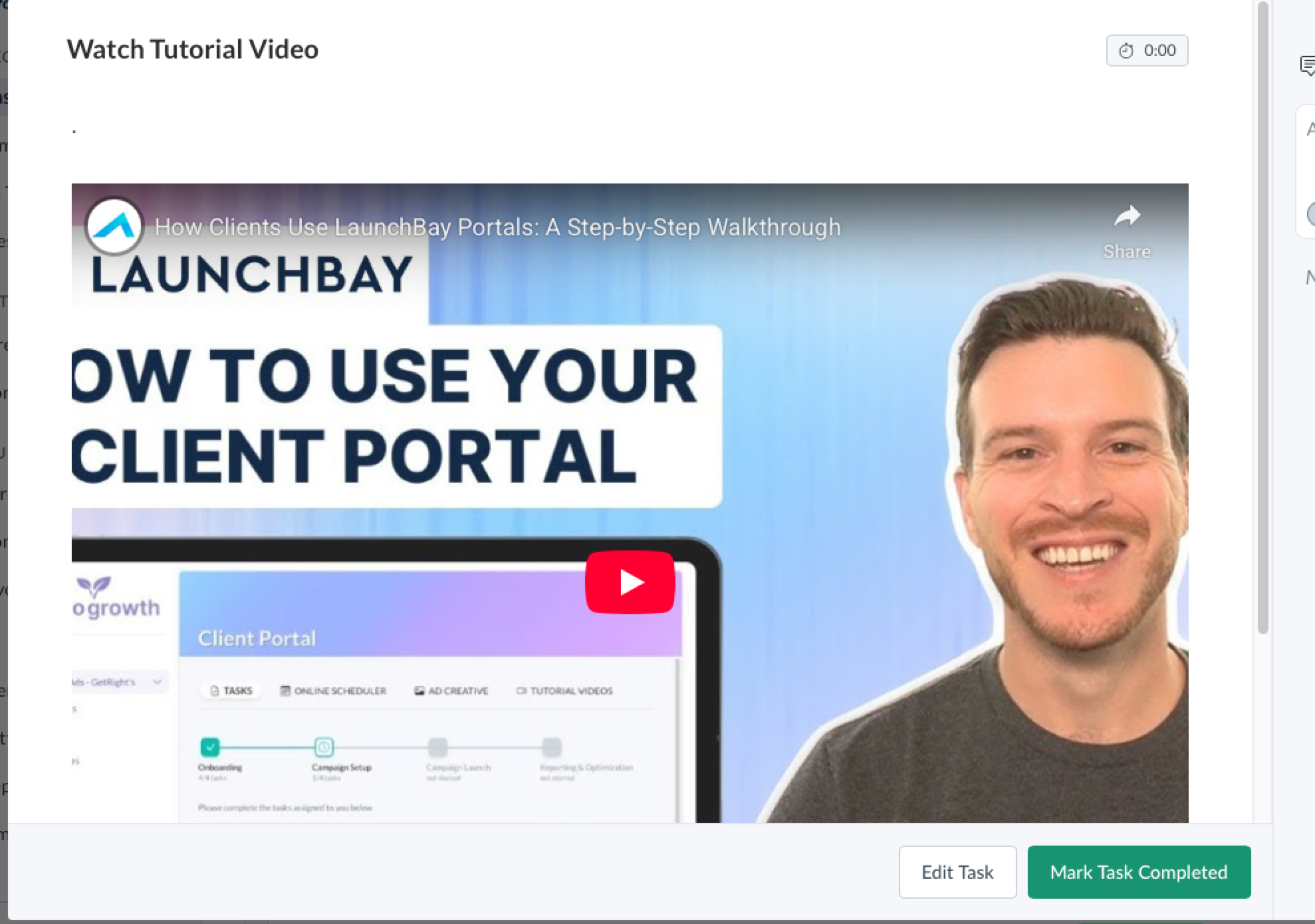 Embed videos from streaming platforms like YouTube and Vimeo clients can watch directly within client tasks.