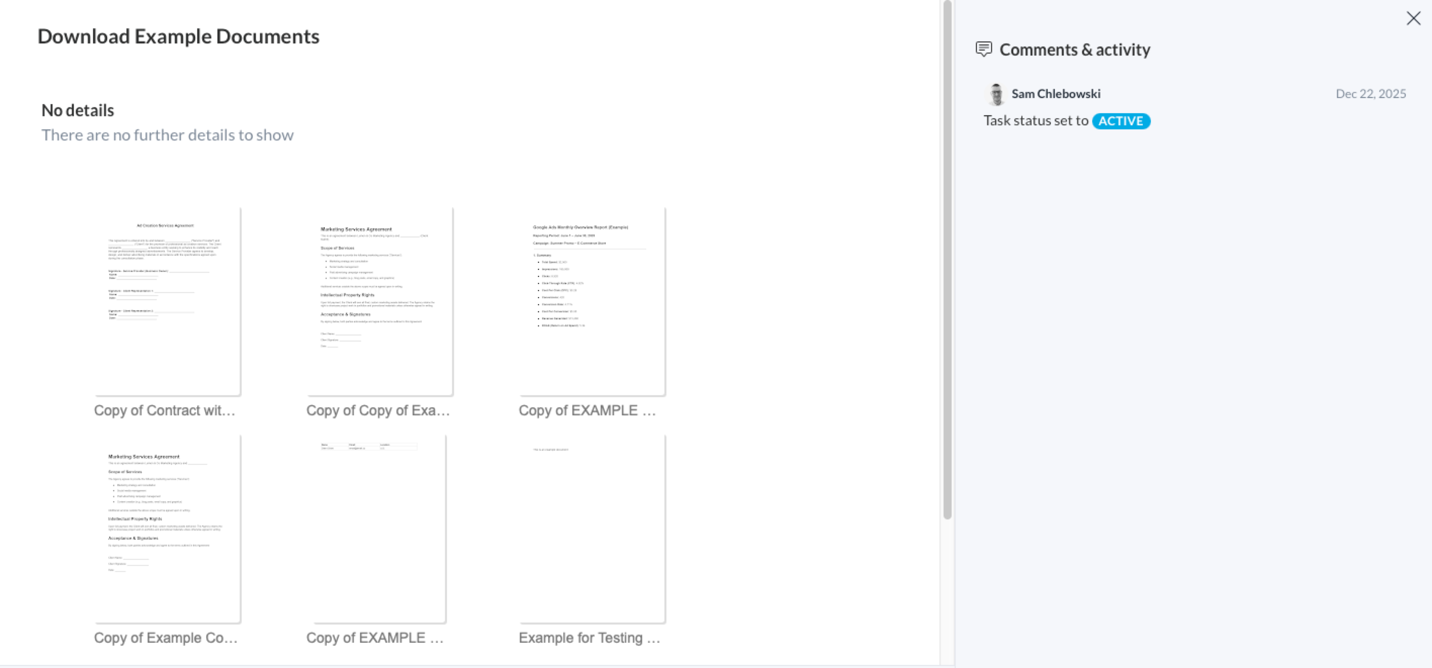 Link to specific Google Docs, Sheets, or Drive folders that clients need to review or edit. For example, agencies can provide assets, drafts, or reports that clients can access and comment on without leaving the task view.