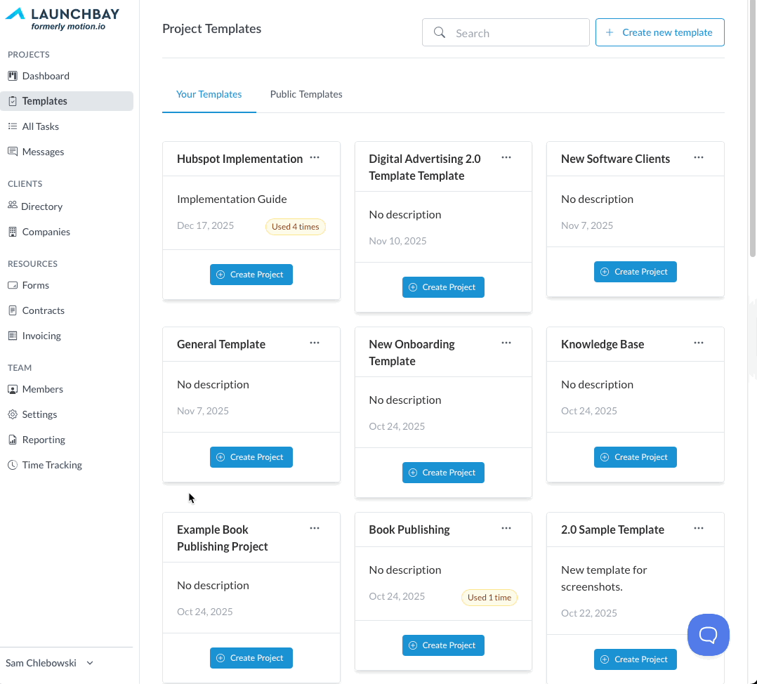 To simulate a workflow, you’ll first need a project with tasks for the AI Client to complete. We recommend starting from one of your existing LaunchBay templates.