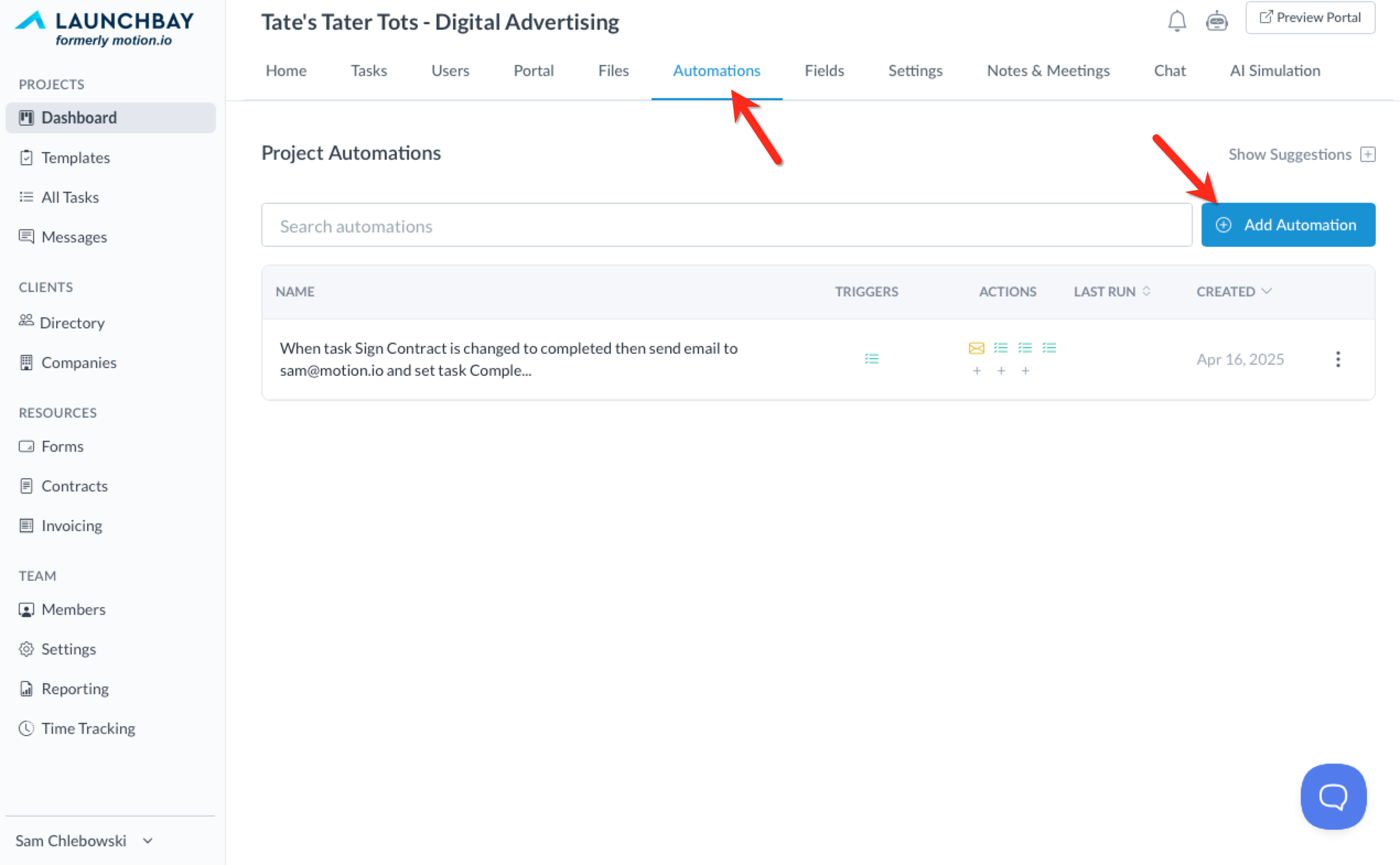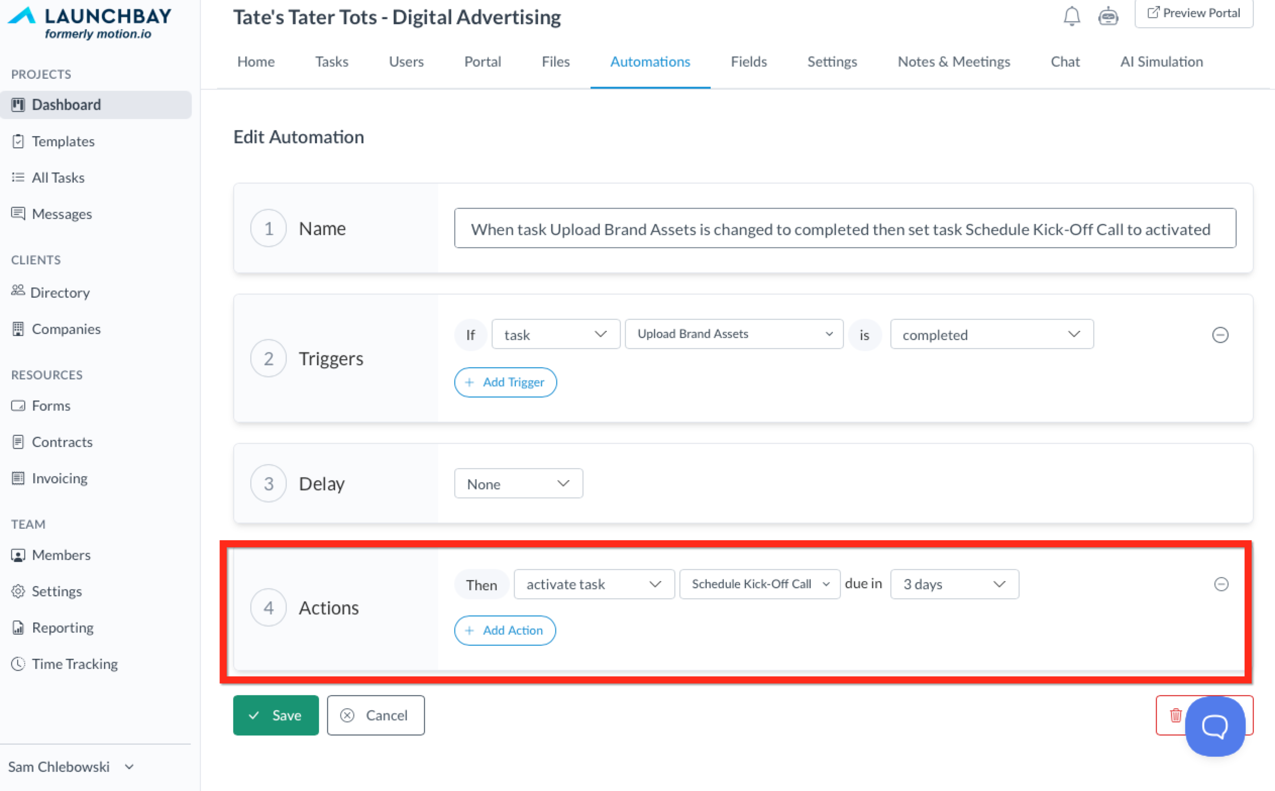 LaunchBay’s automation features allow you to trigger actions based on how clients interact with forms—for example, when a form is submitted or when a specific field is filled out.