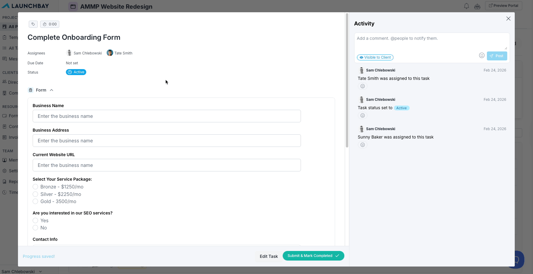 Once your form is saved, attach it to a task or Portal Tab to share it with your clients!