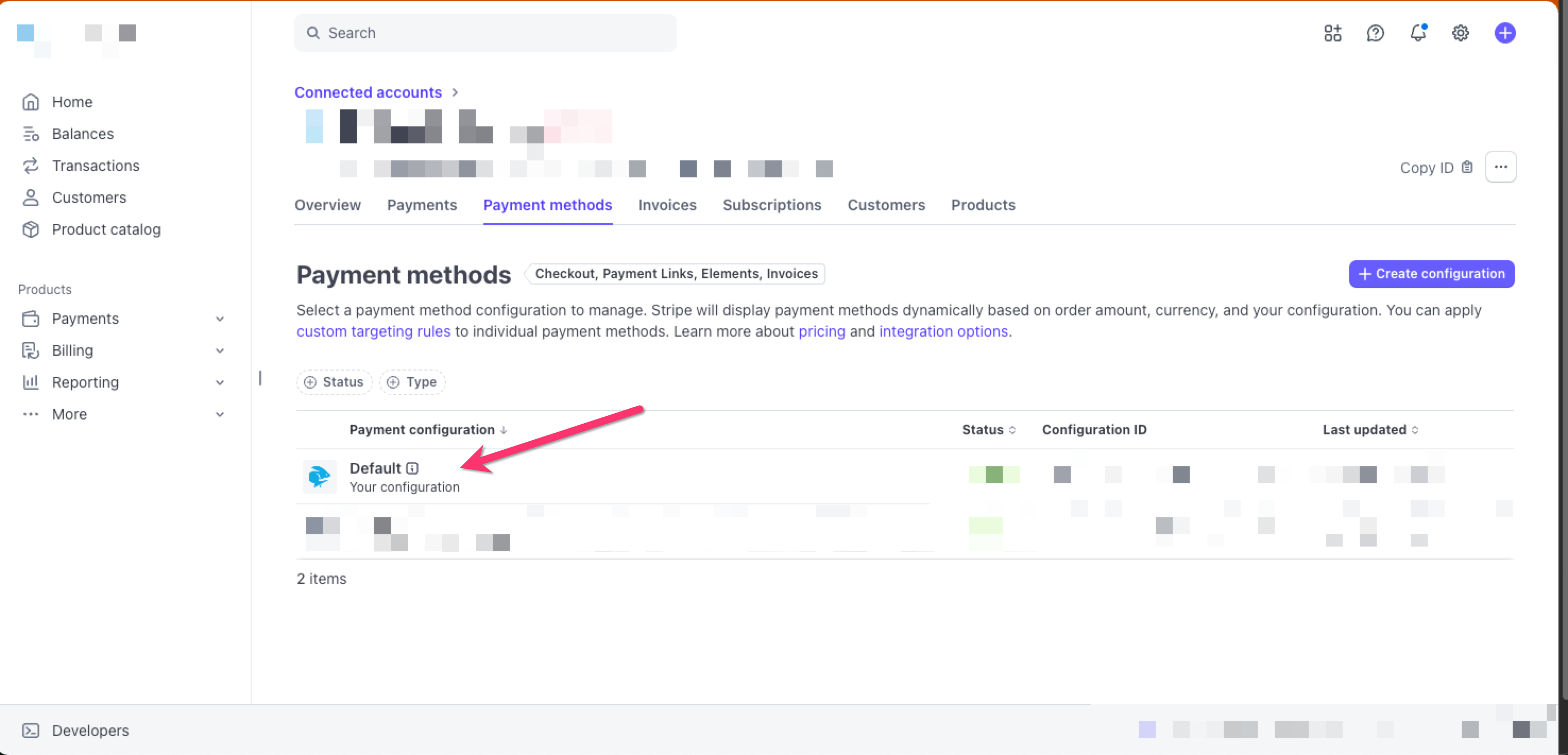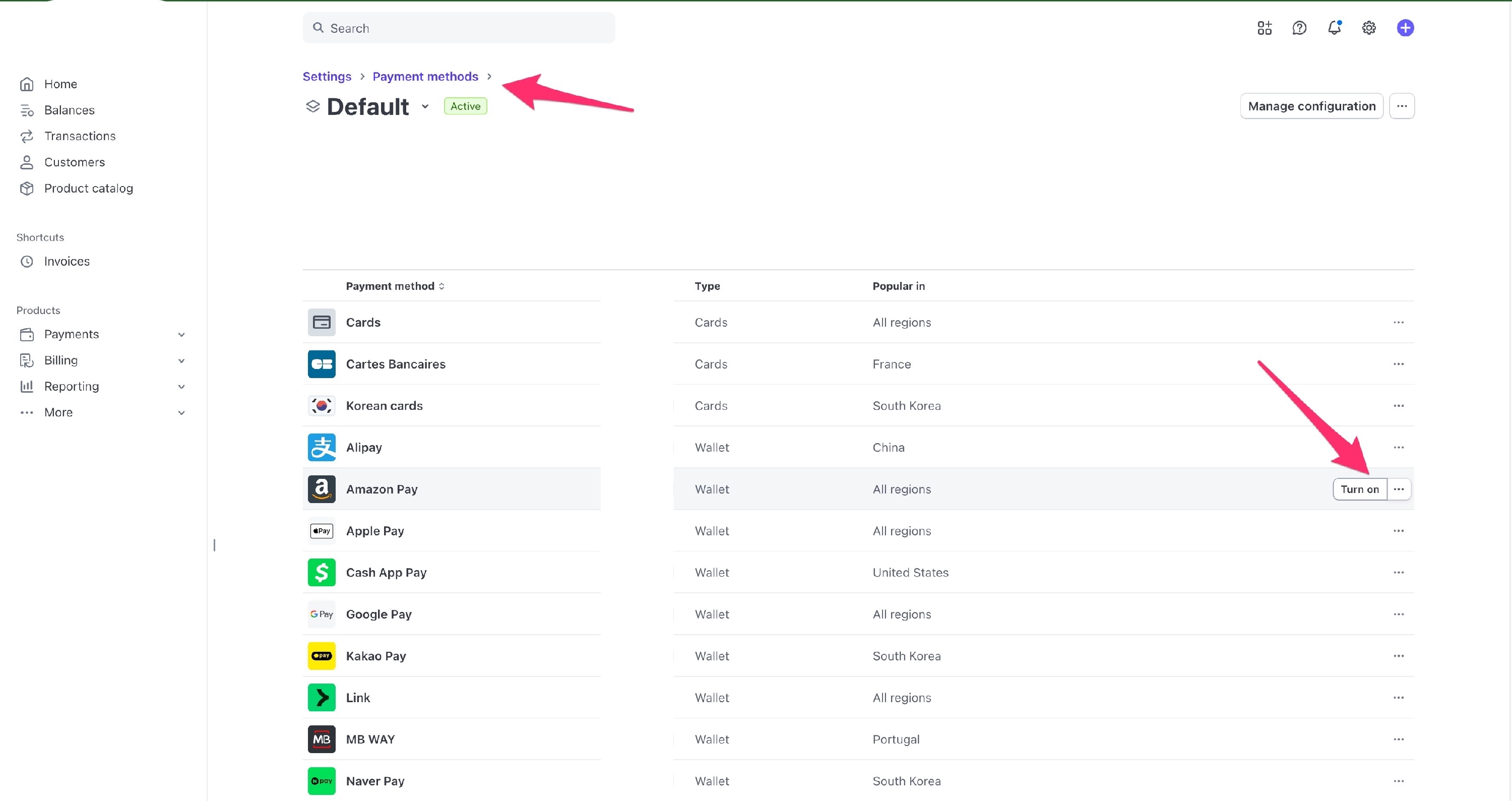 Start by navigating to the Invoicing tab within your LaunchBay Settings, then click “Open Stripe Dashboard.” This will take you to your Stripe account settings, where you’ll select Payment Methods > Default.