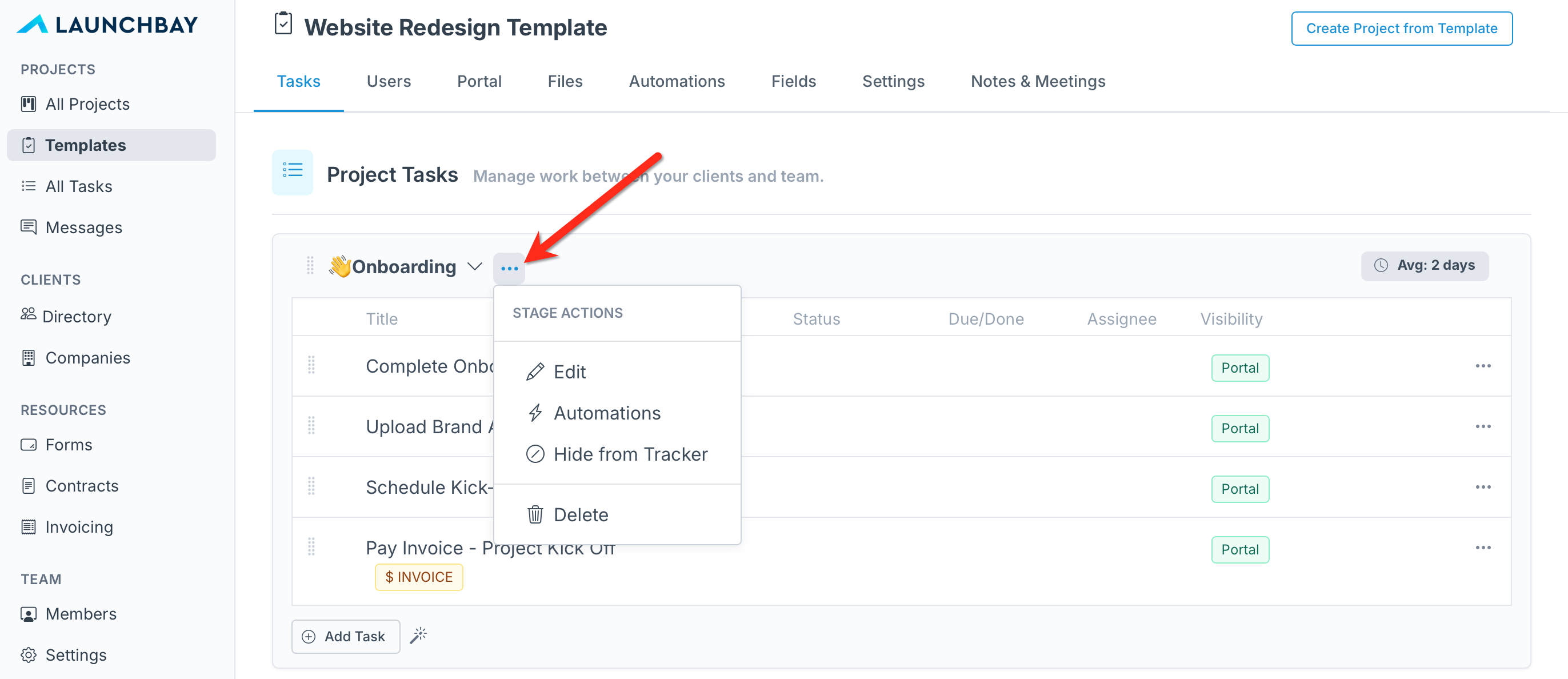 👋 Tip: LaunchBay's Zapier integration allows you to create Zaps that automatically create a project from a template, invite clients, and assign tasks. This means you can fully automate your onboarding process by utilizing Zapier alongside the automation covered in this article!