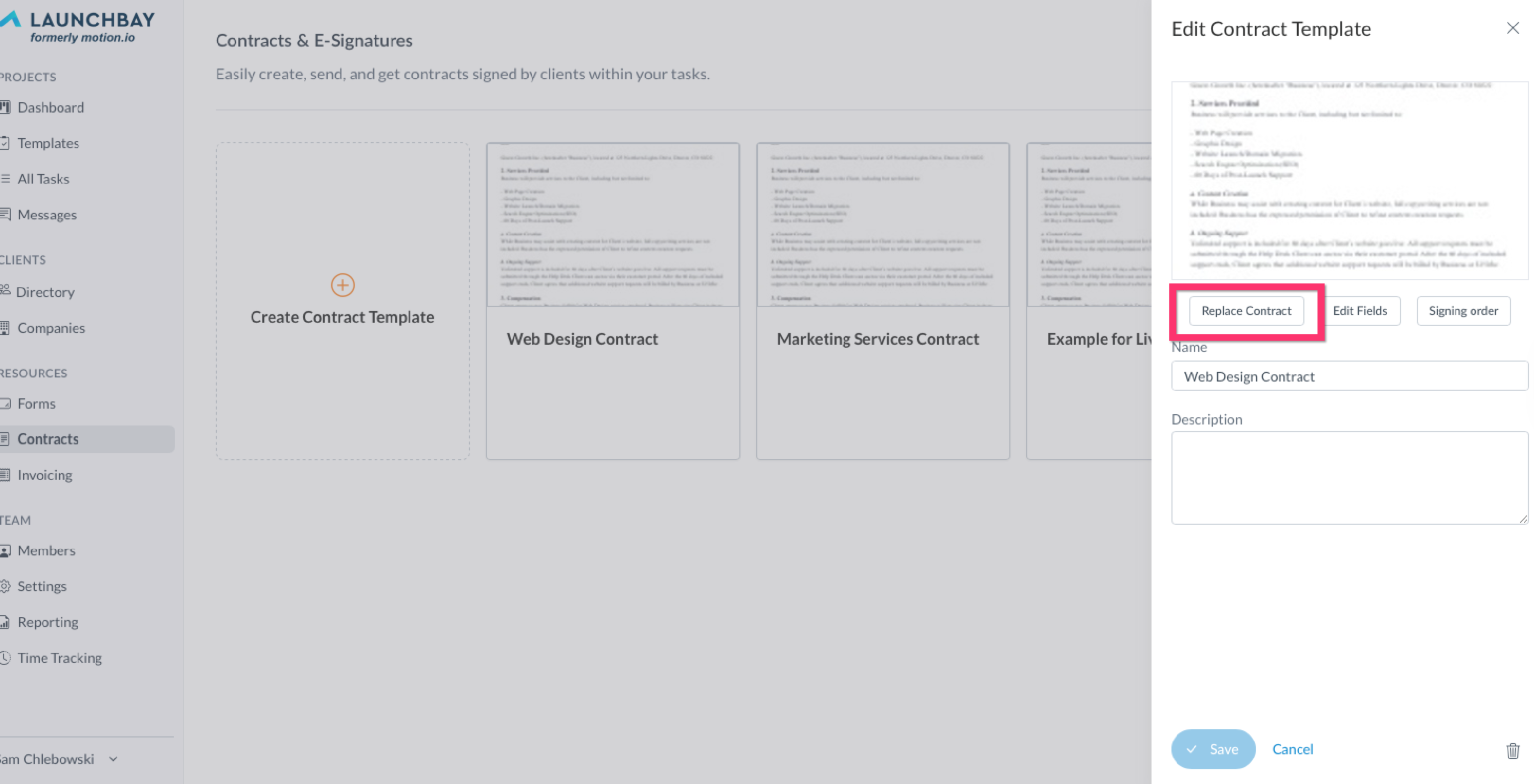📢 Note: For clients to be able to sign and submit the contracts you create, you must add them to tasks using LaunchBay's "Contracts" task option. Click here to learn more.