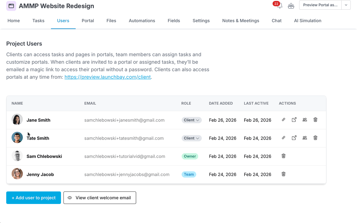 This article will explain how to add team members as users to projects and templates in LaunchBay.