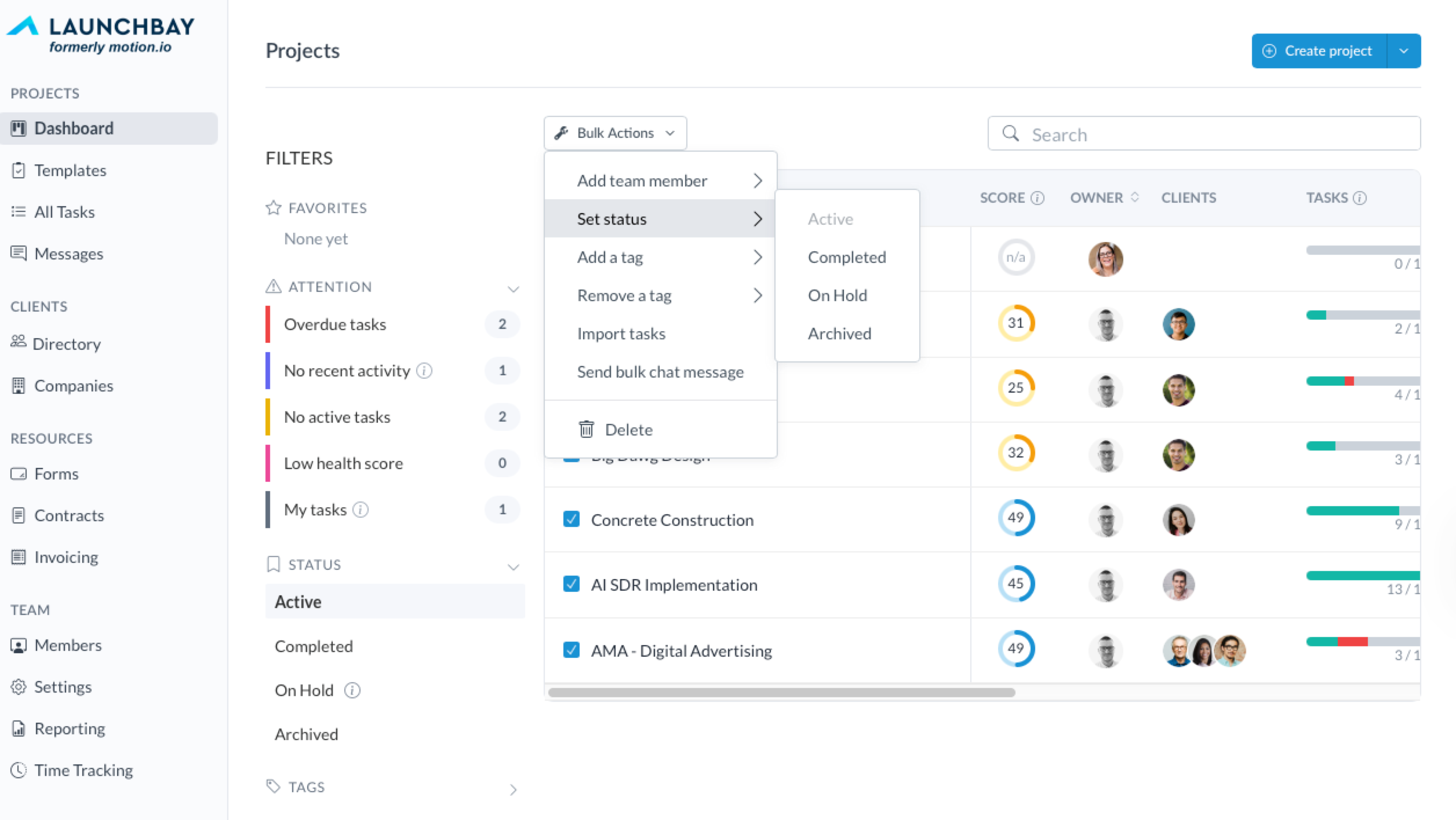 👋 Tip: Project Bulk Actions can be especially helpful when used with the different filter options on the Projects Dashboard. Click here to learn more about using project filters.