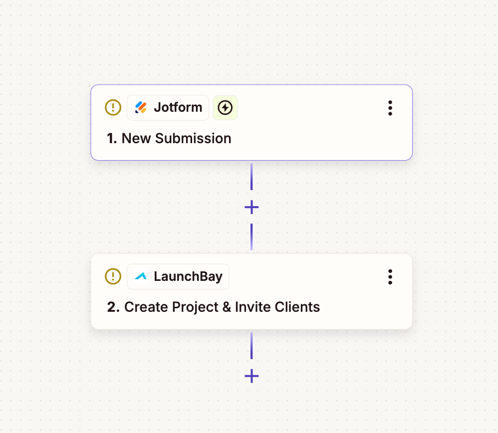 Using the "Create Project" action of LaunchBay's Zapier Integration, you can automate the process of creating projects, inviting clients, and assigning tasks. For detailed setup instructions, click here.